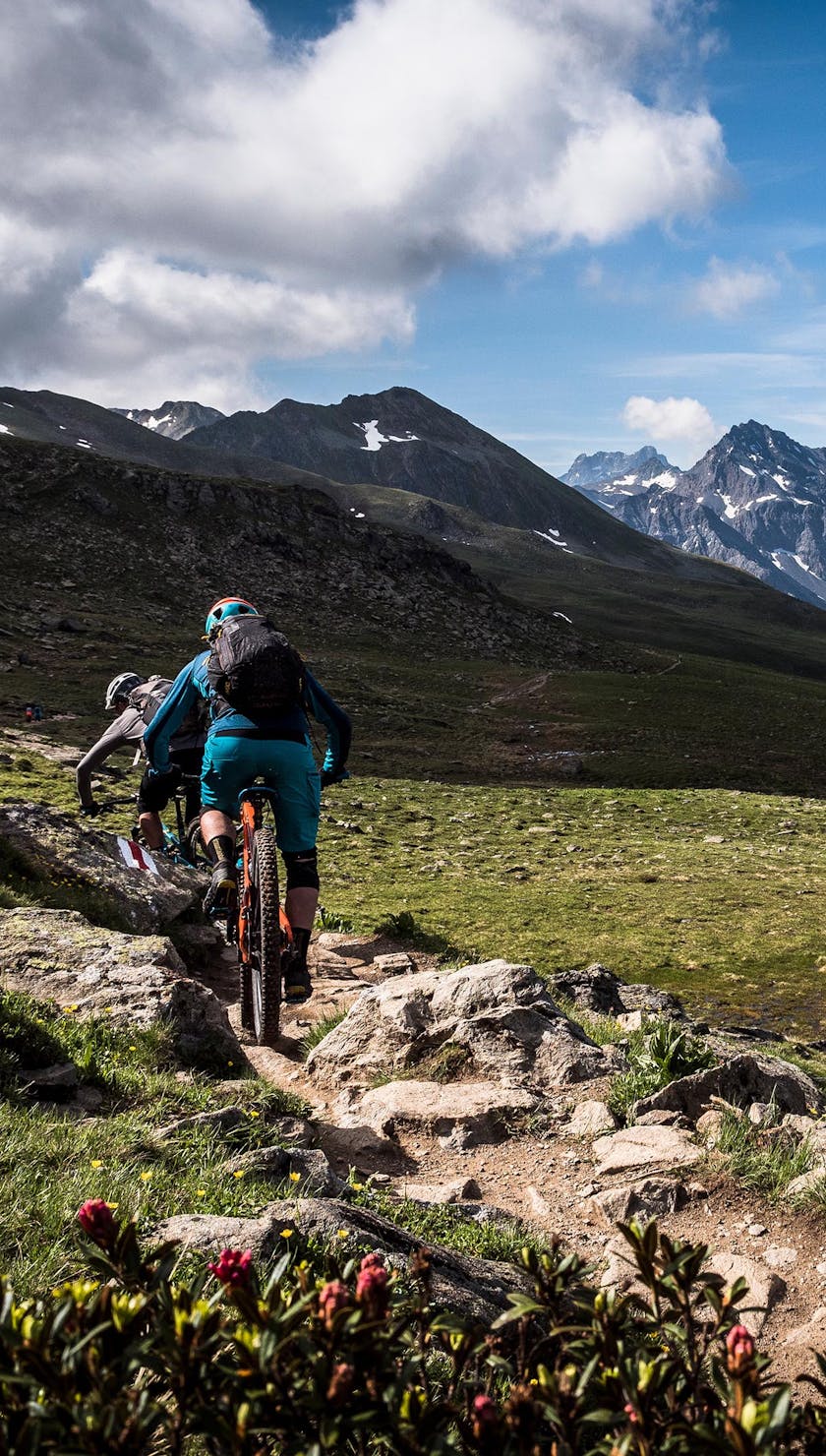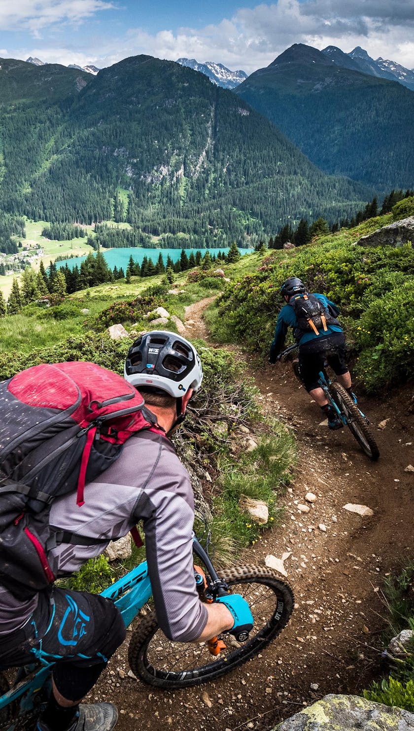 Two thousand vertical feet of sweeping natural berms and punchy rock gardens is as much a full-body work out as a mental one. Focus is interjected with laughter, calculated line choices spliced with reactive self-preservation. How long can a mere two-thousand vertical feel? How much fun is guilty? How can we hotlap it? Wherever you come from, whatever you have ridden previously, Davos will re-write your all-time list of top-five trails; and the Alps Epic will be one of them.