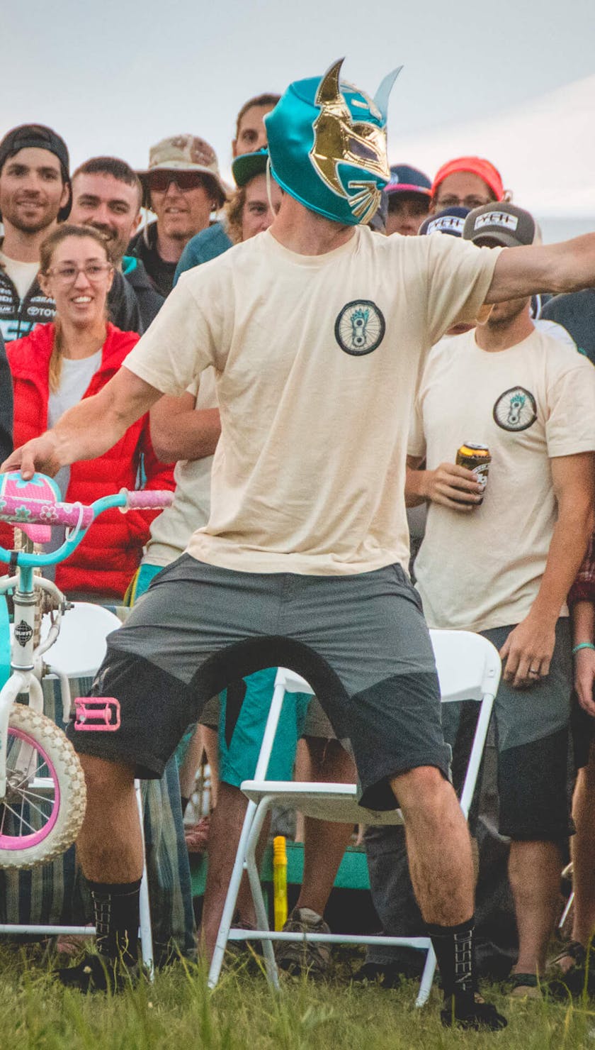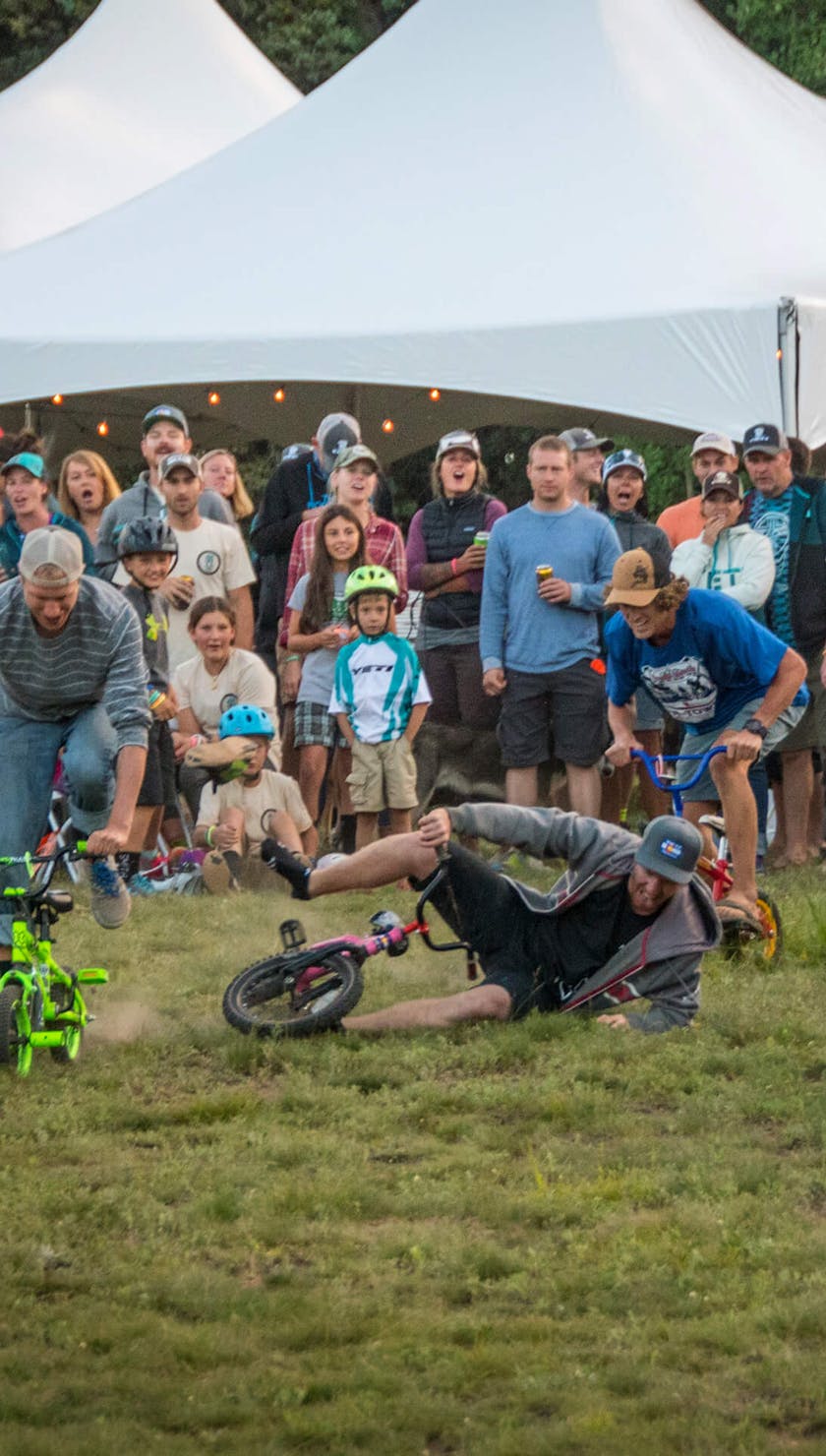 At the trail’s end, we were met with the shuttle rig and cold beer. Back at camp, the usual stupid human games ensued. “Big Joe” passed around his muffler flask filled with the nectar of the gods. Kids rode kiddie bikes, adults rode kiddie bikes, and then we saw who could toss a kiddie bike the farthest.