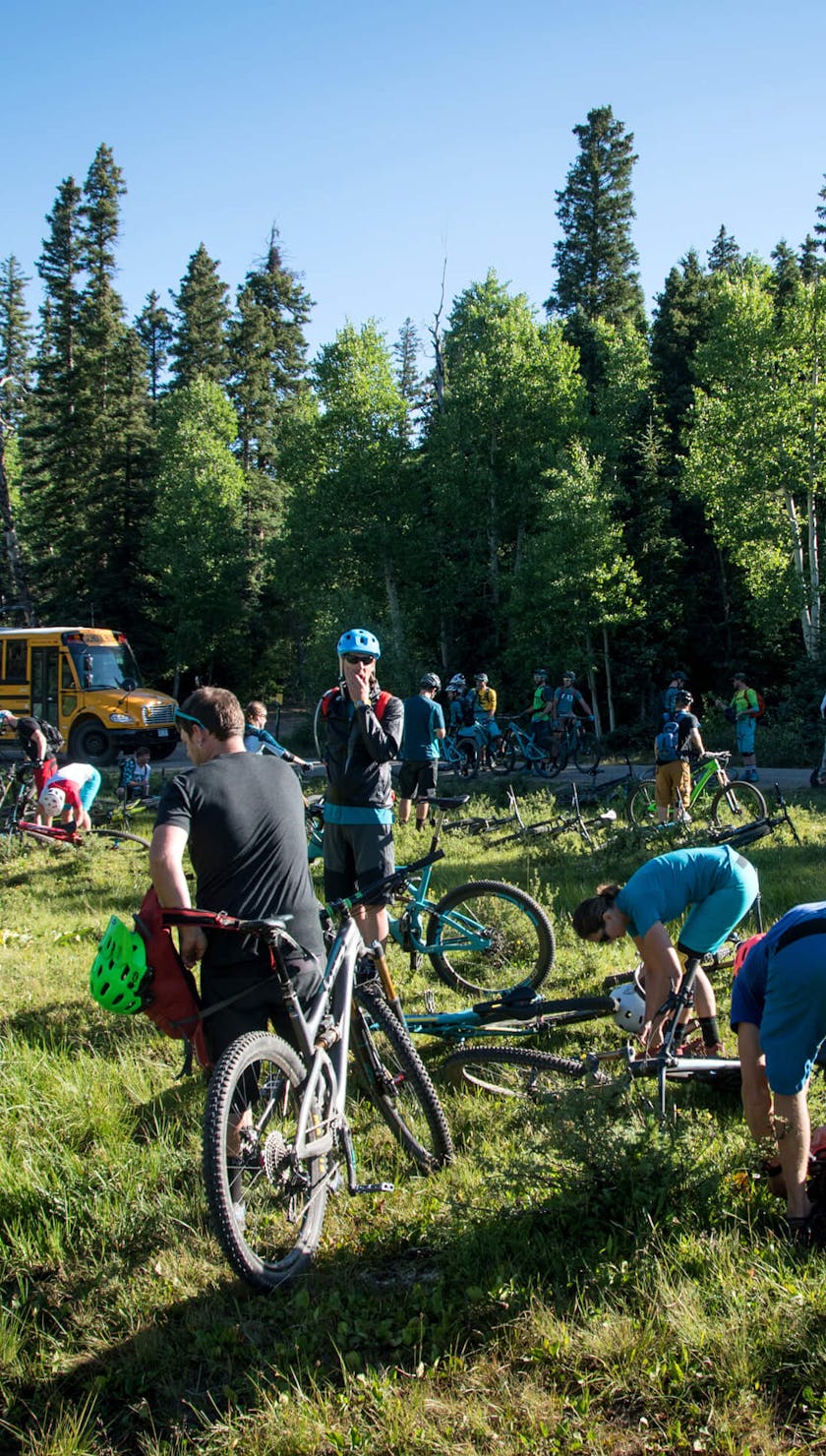 Saturday’s epic took us through changing ecosystems from the high alpine trails encompassing camp to the lowland desert. We got air, glided through chunder, drug our bars in corners, and generally showed off. The climb out was grueling and hot — just the way we like it.