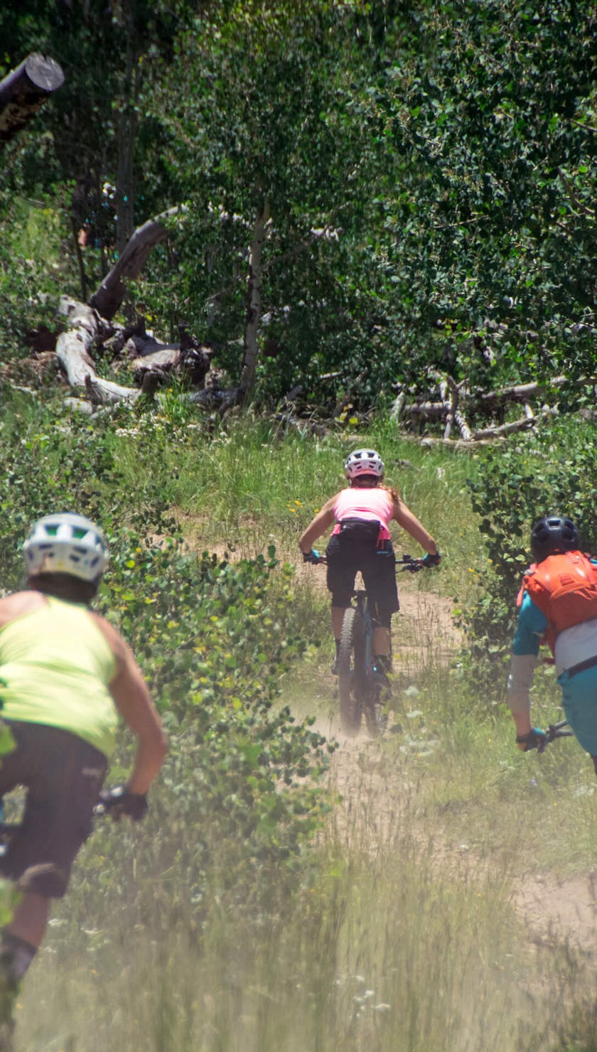 RIDES FROM CAMP SKIPPED THROUGH THE HIGH ALPINE FILLED WITH WILD FLOWERS, PEAK-TO-PEAK VIEWS, AND AMPLE SHADE FROM PINE AND ASPEN TREES.