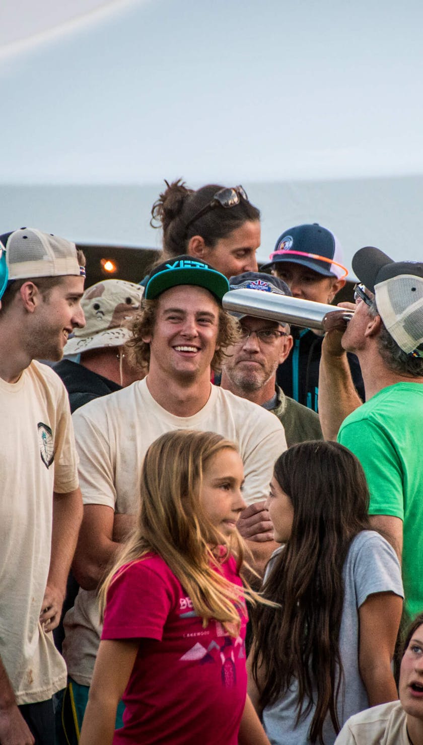 AT THE TRAIL’S END, WE WERE MET WITH THE SHUTTLE RIG AND COLD BEER. BACK AT CAMP, THE USUAL STUPID HUMAN GAMES ENSUED.