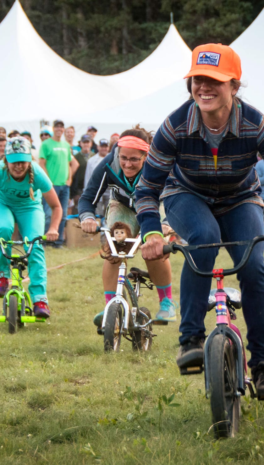 Rides from camp skipped through the high alpine filled with wild flowers, peak-to-peak views, and ample shade from pine and aspen trees. We formed small motley crews of fellow freaks we met at camp, ripped around the trails with pit stops back at camp for a cold brew between laps. Our neighbors, about 400 head of sheep, watched us ride by wild-eyed.